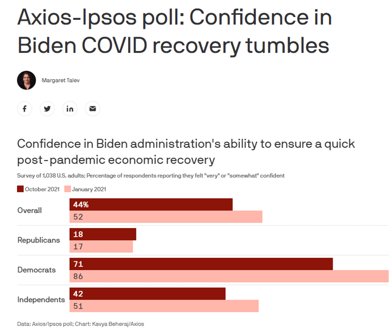 In poll after poll, Americans continue to lose confidence in Joe Biden. The American people are not confident that Joe Biden can effectively lead the country’s post-COVID economic recovery. Americans’ confidence in Biden’s ability to lead an economic recovery has dropped 8% since January. Notably, the decline is most significant among Democrats and Independents.